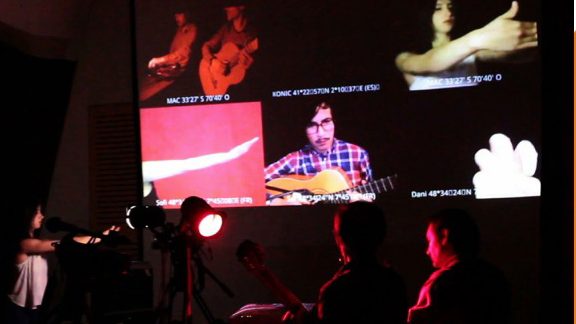 Performances autour des notions de présence et géolocalisation, d’interaction, de création à distance et de frontières. La performance « Mes frontières, tes frontières » a été présentée le 6 janvier 2017 au Musée d’Art Contemporain de Santiago du Chili, dans le cadre du projet Anilla Cultural – Cruces Sonoros. Ce travail explorait les dialogues entre présence physique et virtuelle, en interrogeant les limites et frontières géographiques, corporelles et symboliques à travers la danse et les technologies numériques.